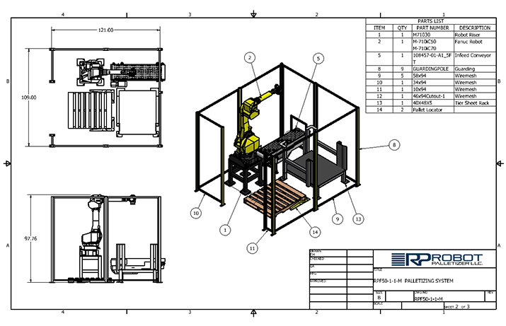 Model RPF50-1-1-M is a semi-automated palletizing system that is versatile and cost effective. Kosoku Automation has pre-engineered our systems to provide compact modules that are easy to set up and operate. Pallets are manually placed and removed in and out of the cell providing a cost effective palletizing solution. RPF50-1-1-M Robot Palletizer can be delivered withing 6 to 8 weeks ARO.